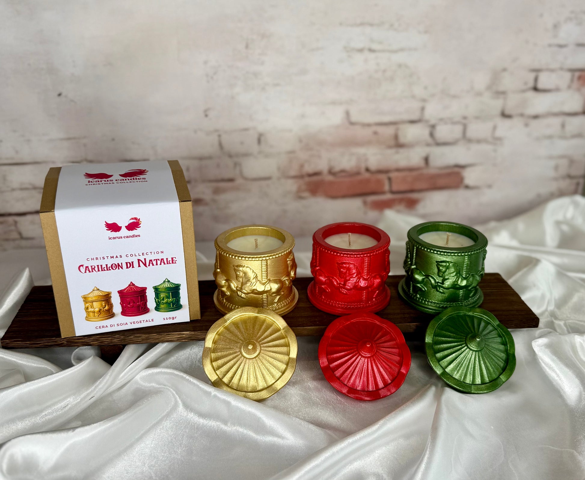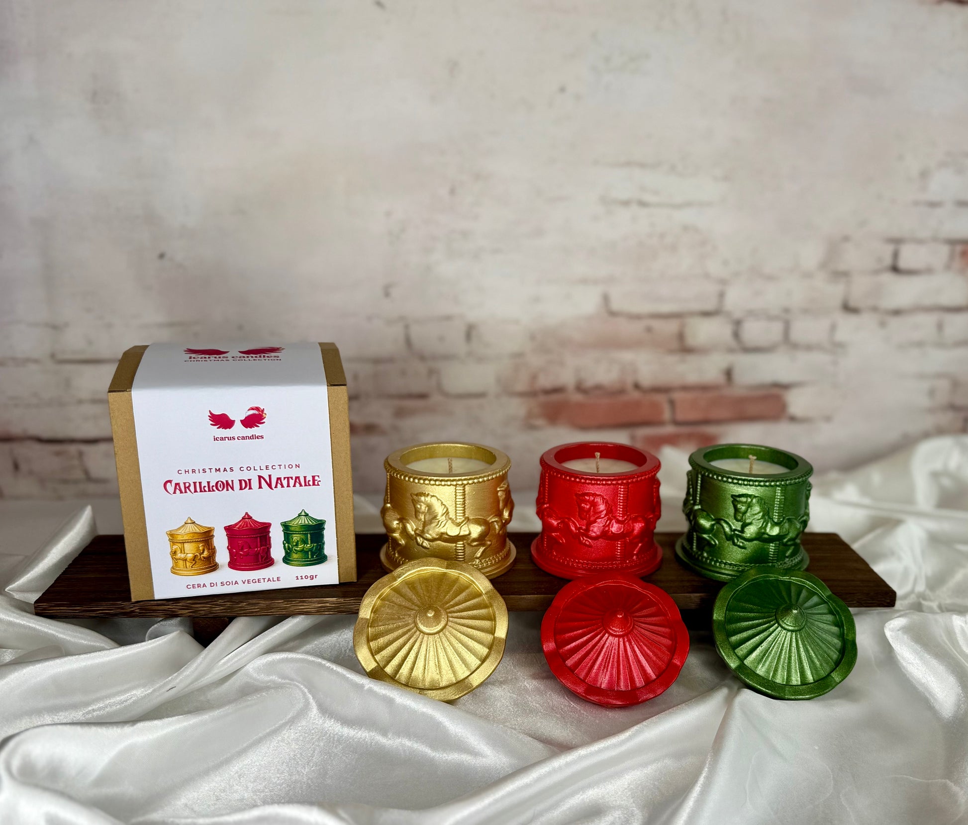 Packaging: Ogni Carillon è custodito in una scatola kraft dal design essenziale e naturale, impreziosita da un motivo grafico che richiama il prodotto al suo interno. Sul packaging è riportata con chiarezza l’indicazione del colore e della fragranza contenuta, così da rendere ogni dettaglio curato e riconoscibile.