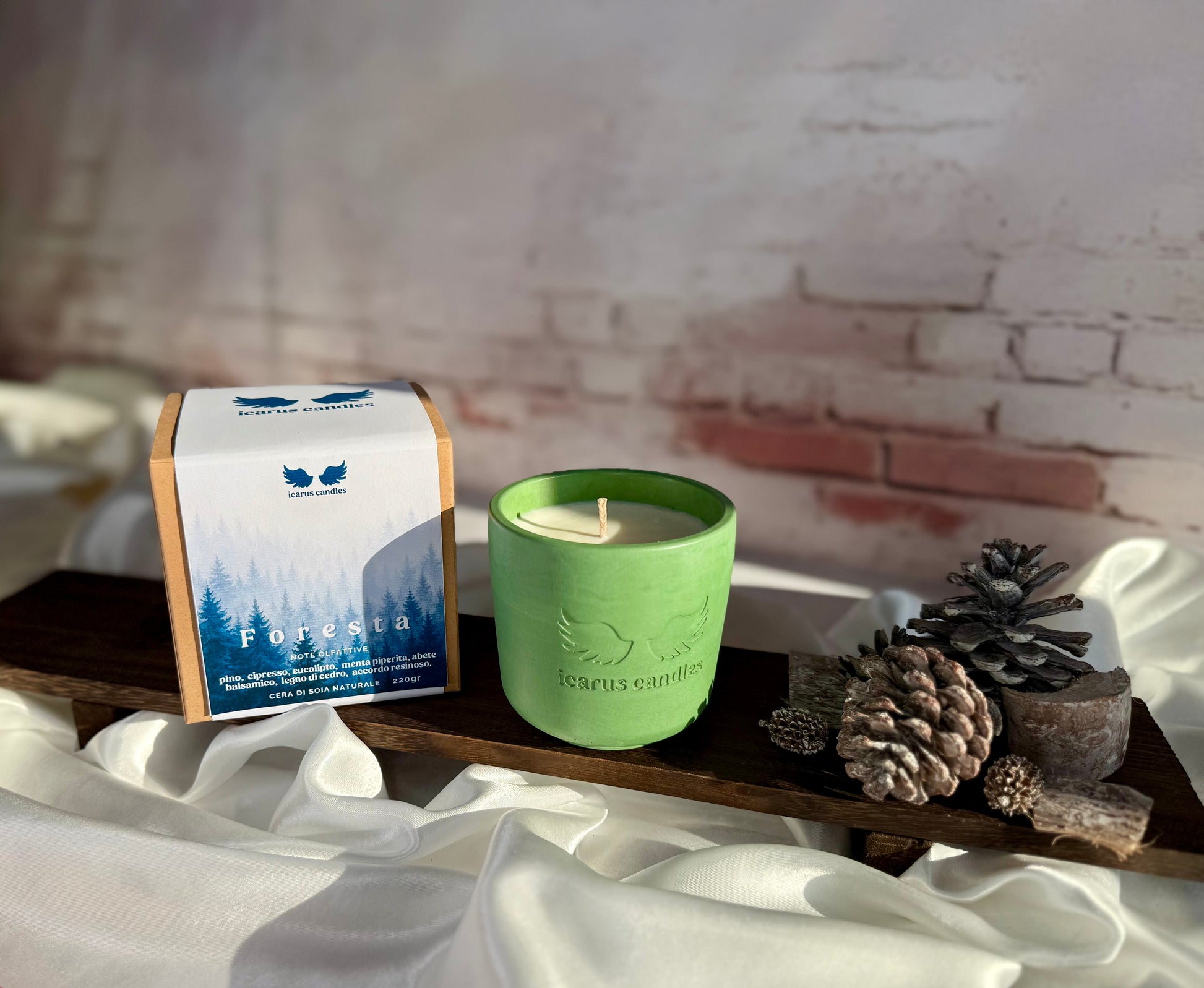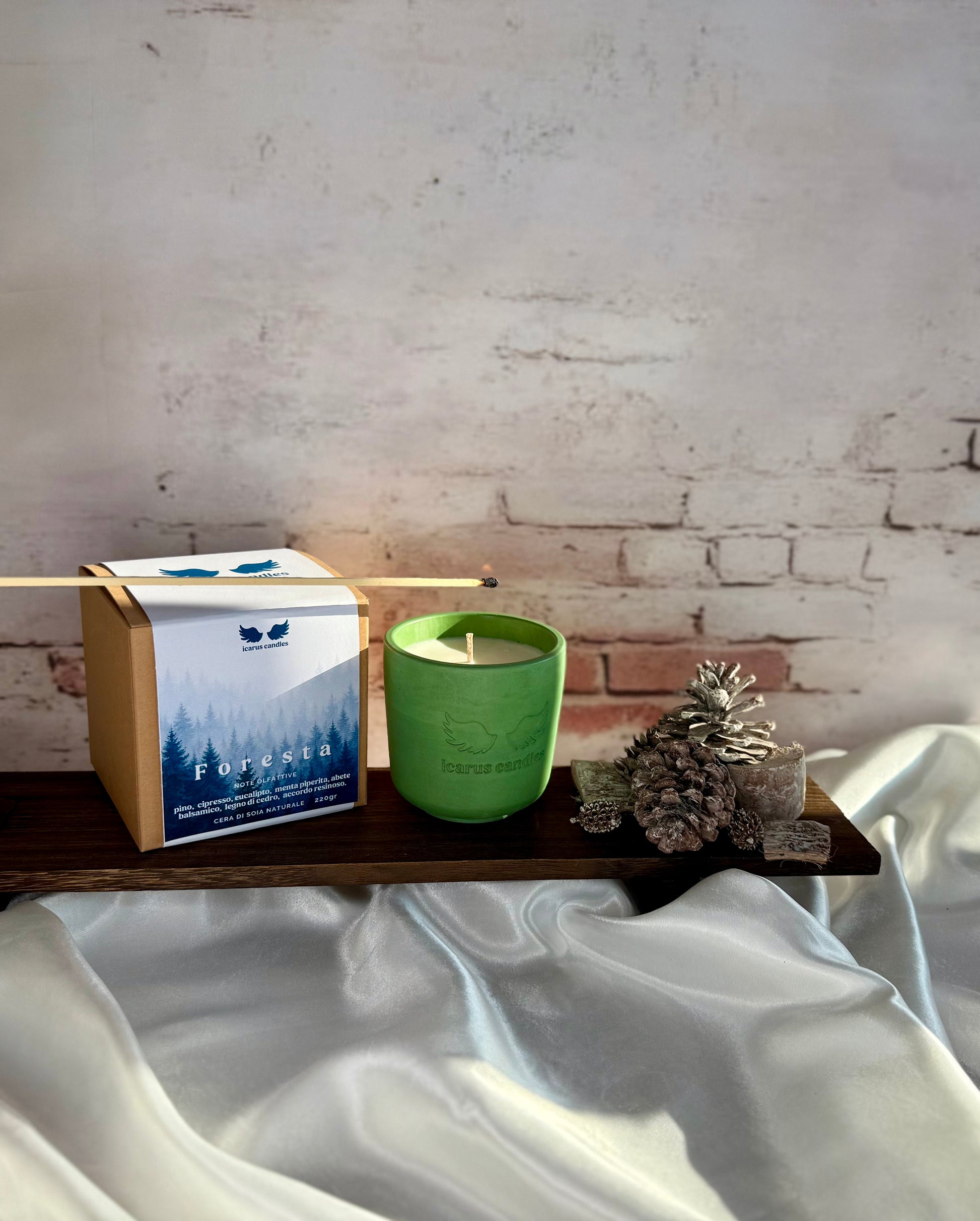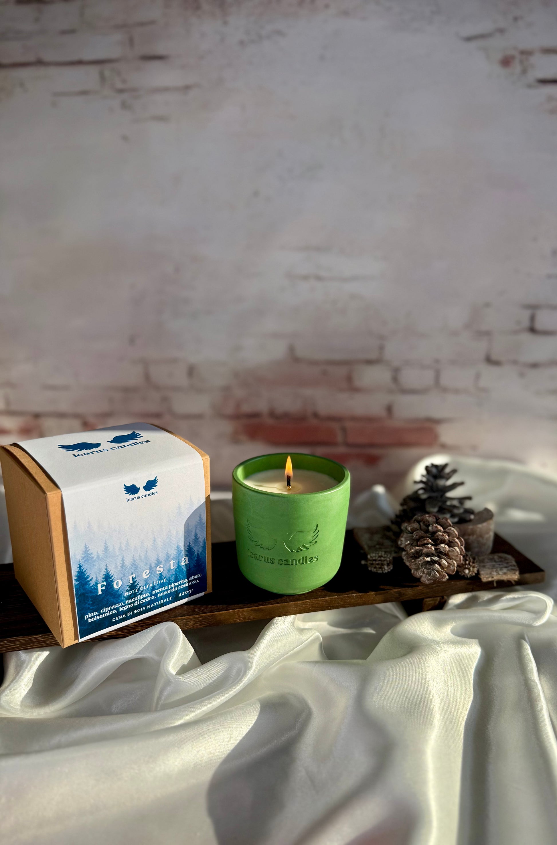 Accendi la candela "Foresta" e immergiti nella serenità di una foresta invernale nordica. Le note fresche di aghi di pino, balsamo di abete e legno di cedro ti avvolgono, trasportandoti in un rifugio silenzioso dove l'aria è pura e l'atmosfera è intrisa di tranquillità. Perfetta per chi cerca una fragranza legnosa, fresca e rinvigorente, ideale per creare un ambiente rilassante e naturale.