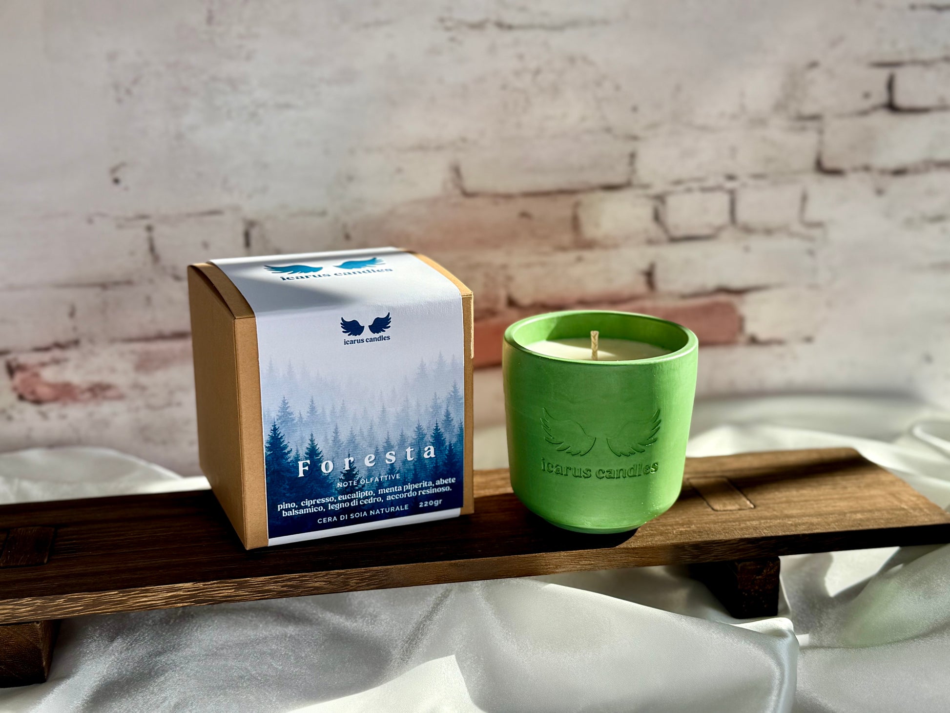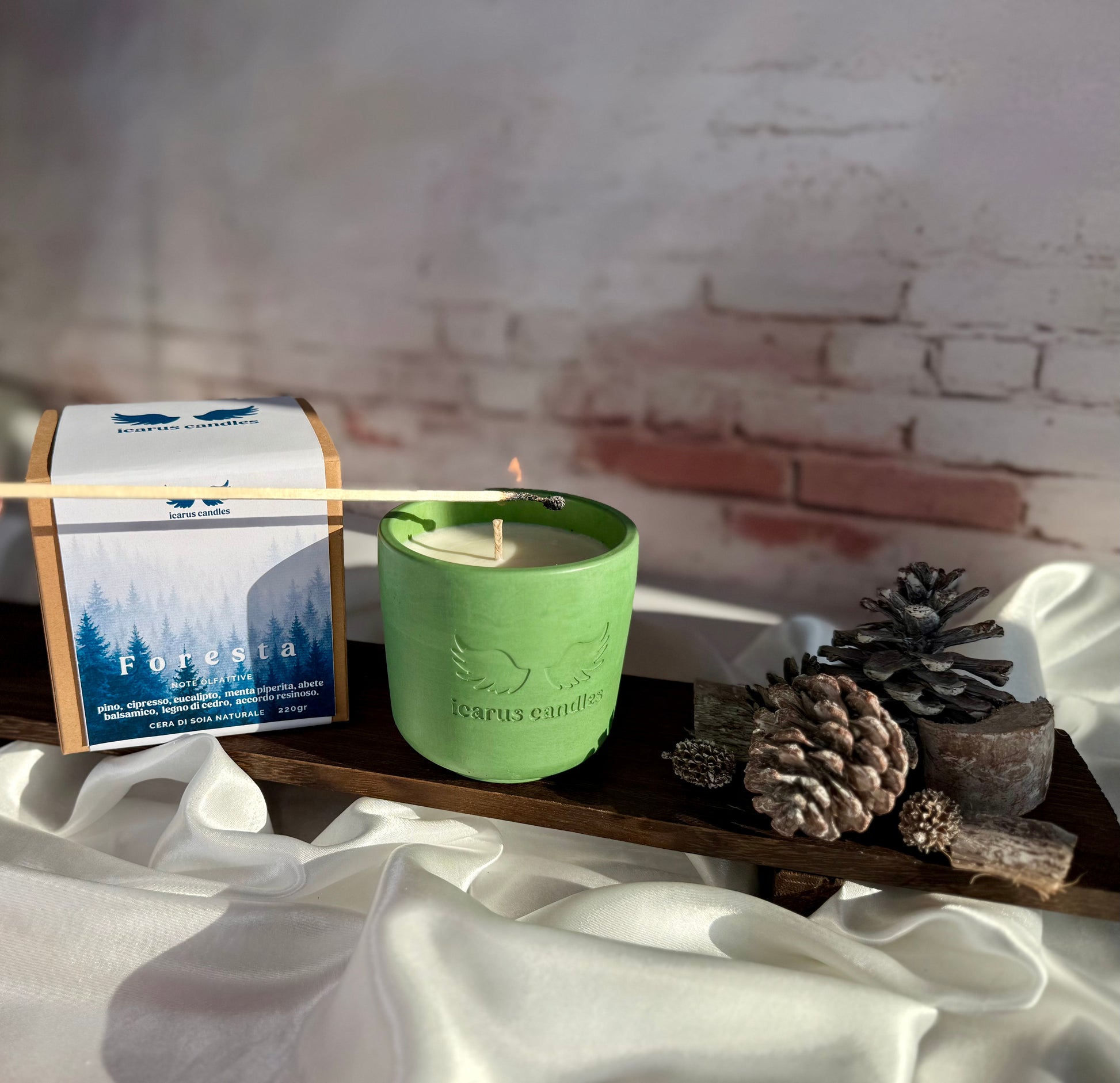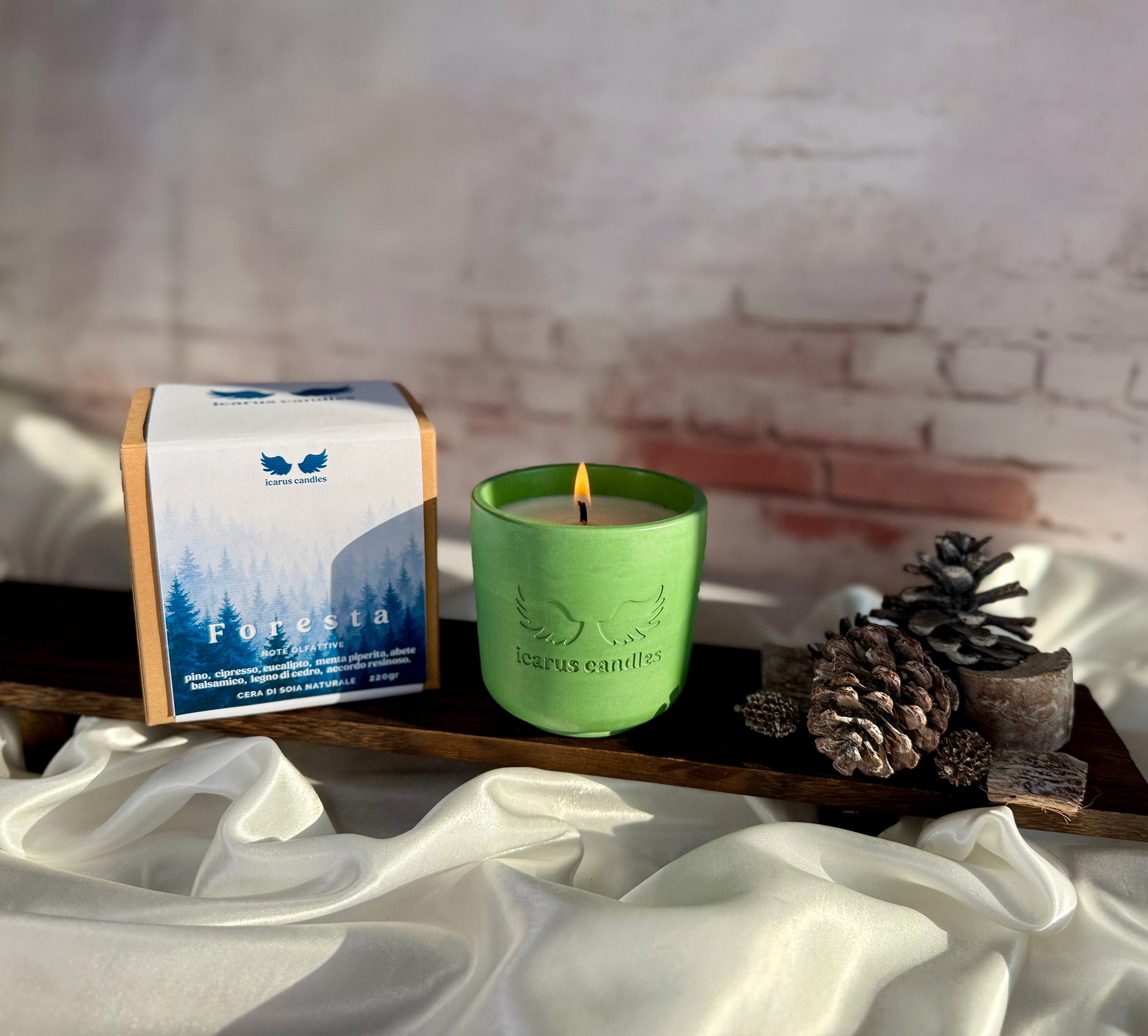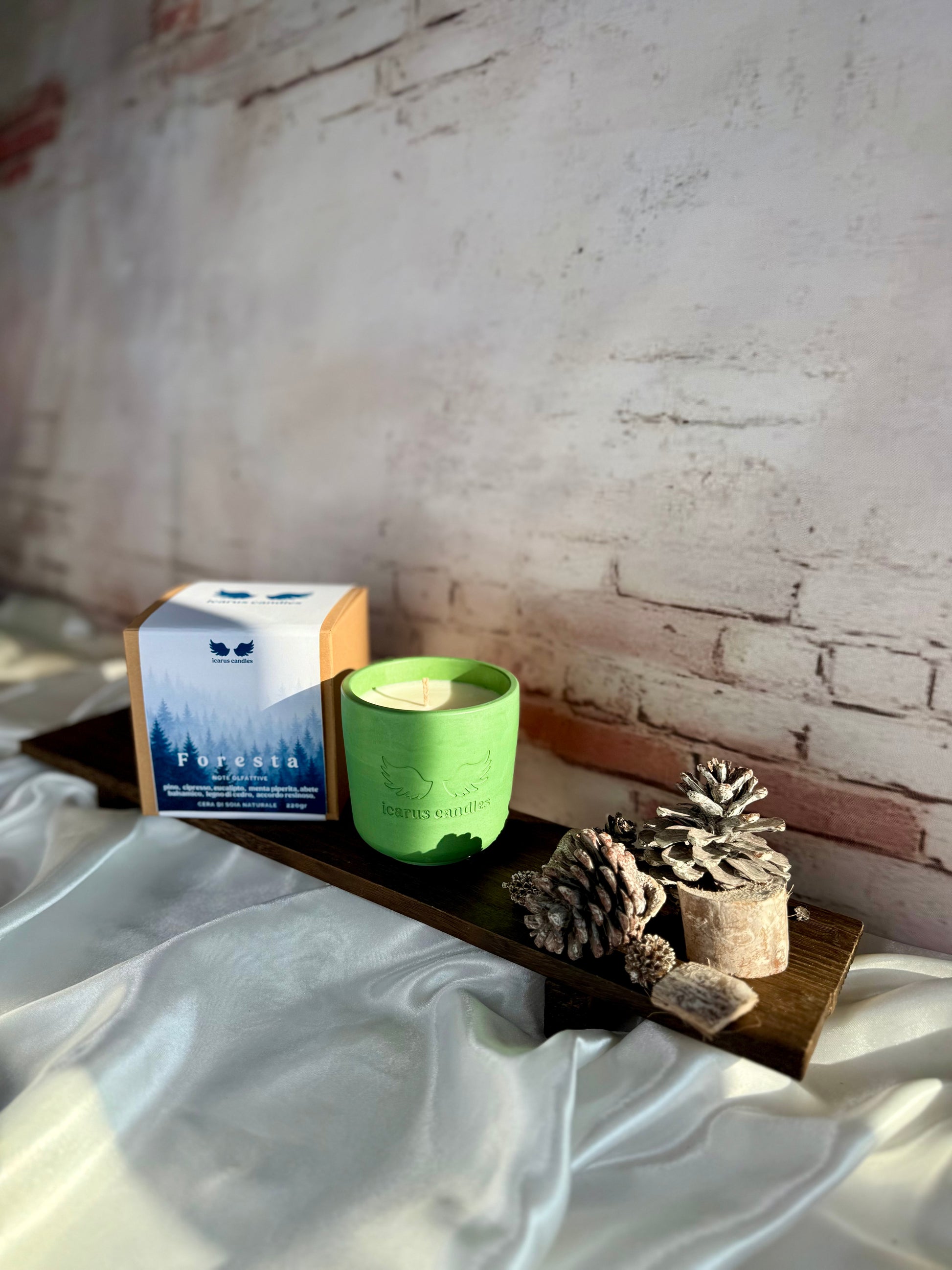 Accendi la candela "Foresta" e immergiti nella serenità di una foresta invernale nordica. Le note fresche di aghi di pino, balsamo di abete e legno di cedro ti avvolgono, trasportandoti in un rifugio silenzioso dove l'aria è pura e l'atmosfera è intrisa di tranquillità. Perfetta per chi cerca una fragranza legnosa, fresca e rinvigorente, ideale per creare un ambiente rilassante e naturale.