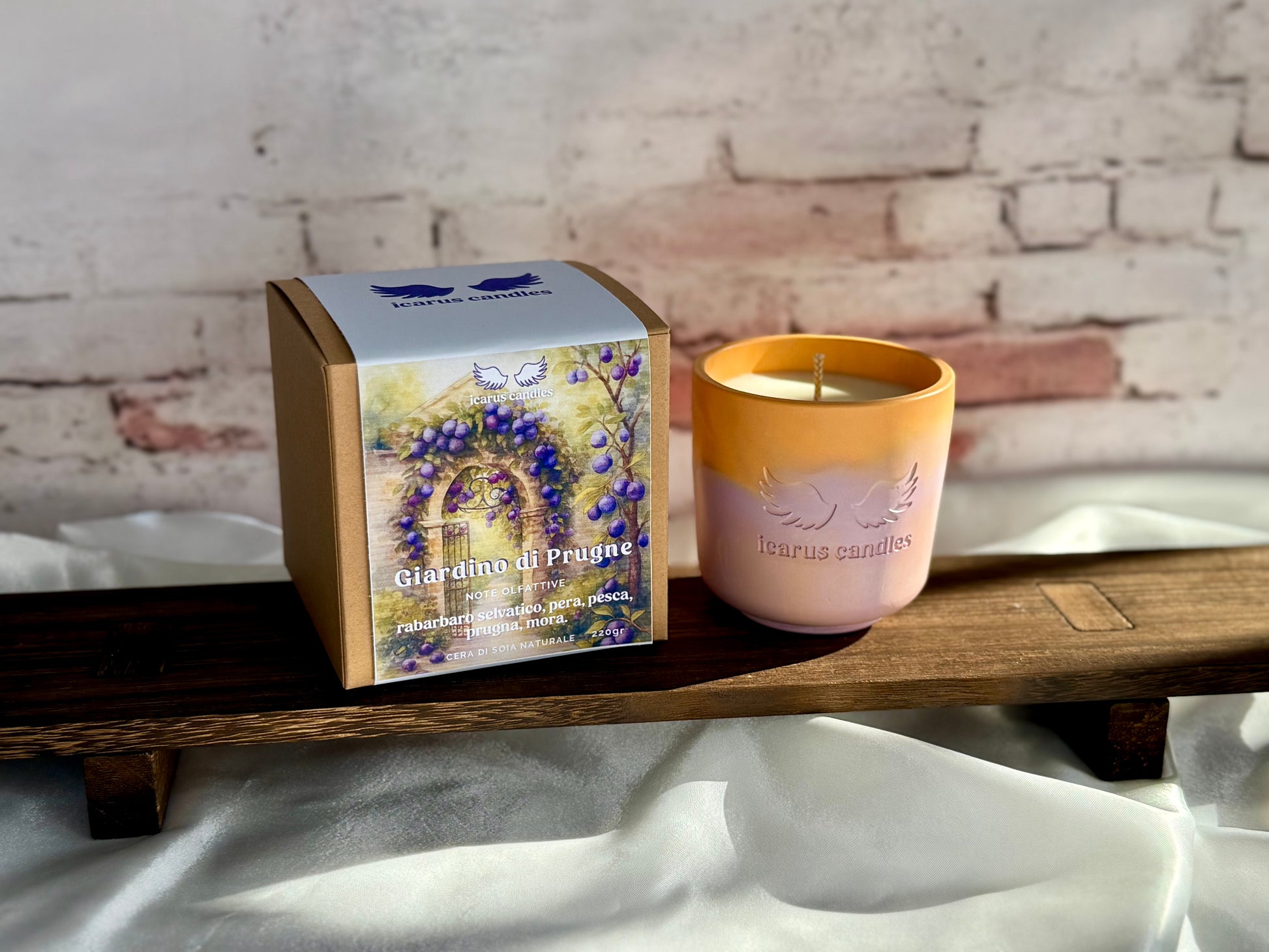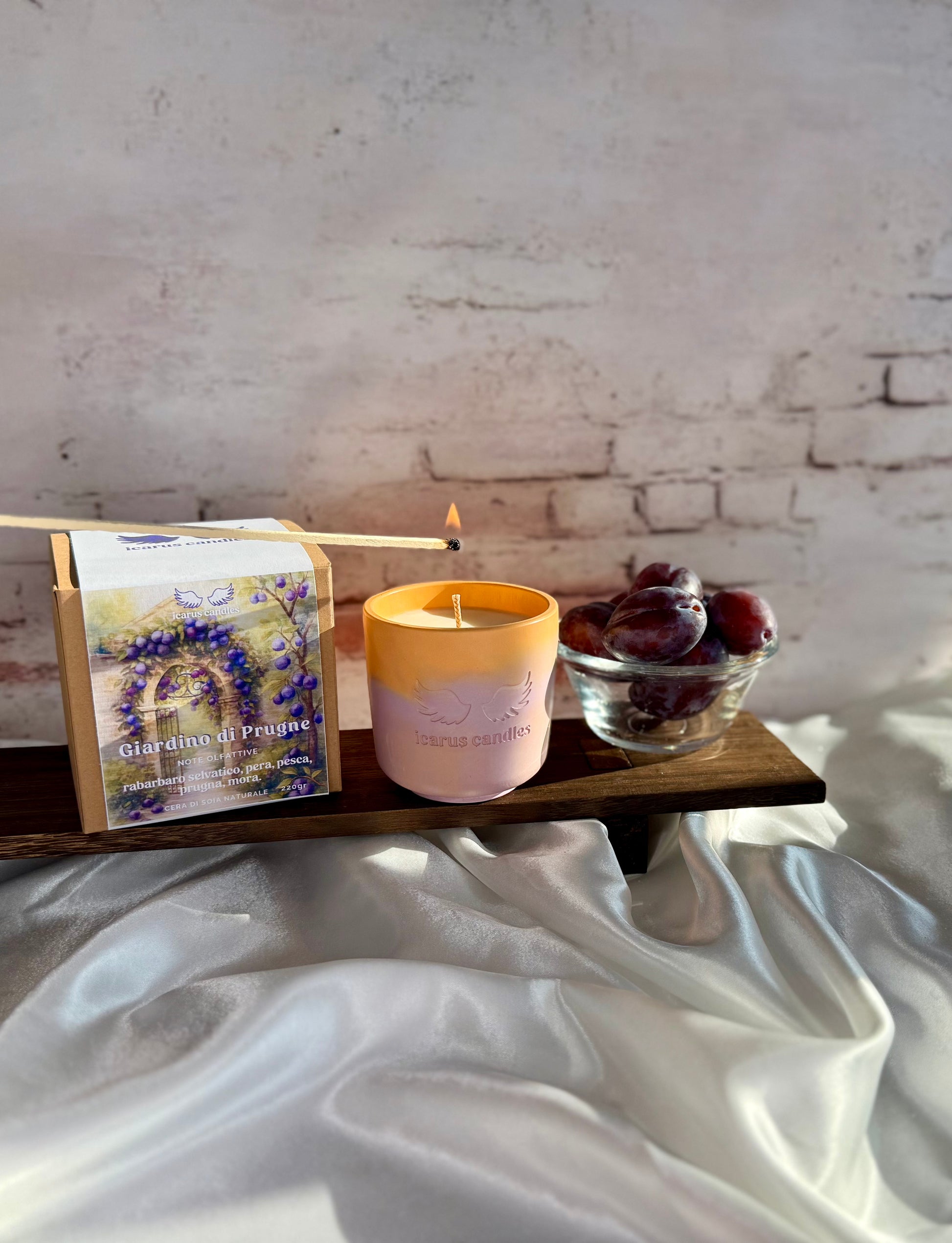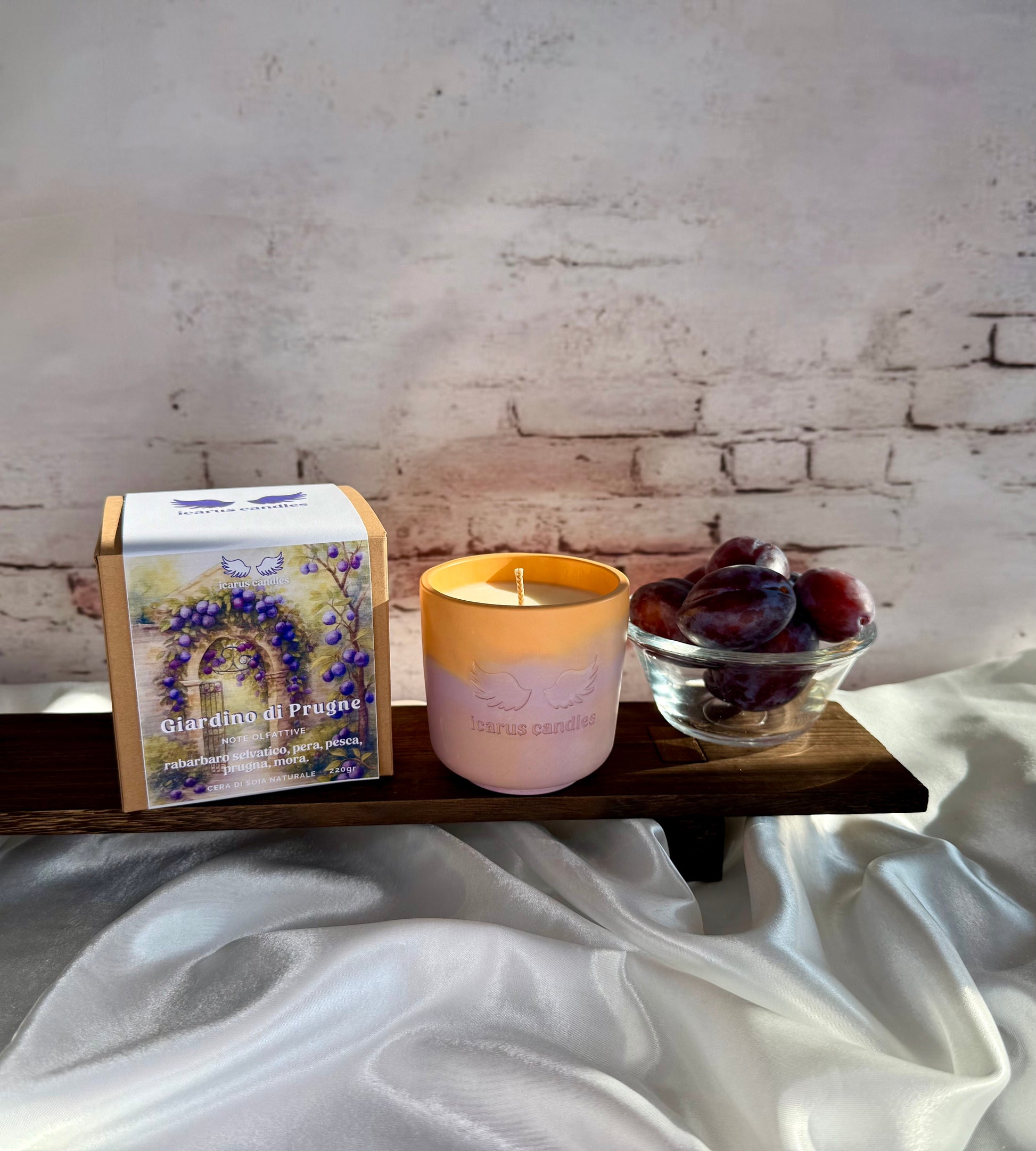 Accendi questa candela e lasciati trasportare in un giardino estivo, dove la dolcezza della prugna nera si fonde con la freschezza del rabarbaro. Le note fruttate e leggermente aspre di testa si armonizzano con un cuore di pesca e pera matura, mentre il fondo di prugna e mora completa la fragranza. Perfetta per creare un’atmosfera vivace, fruttata e accogliente in casa.