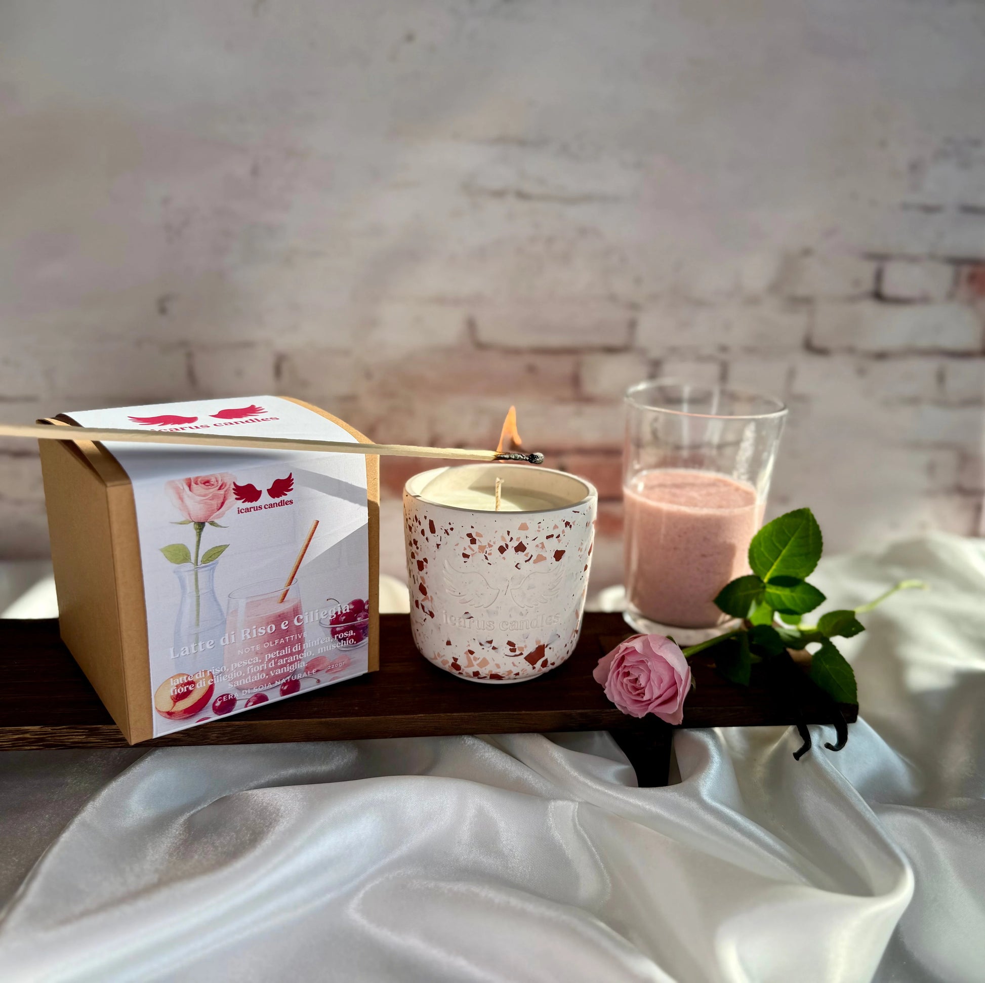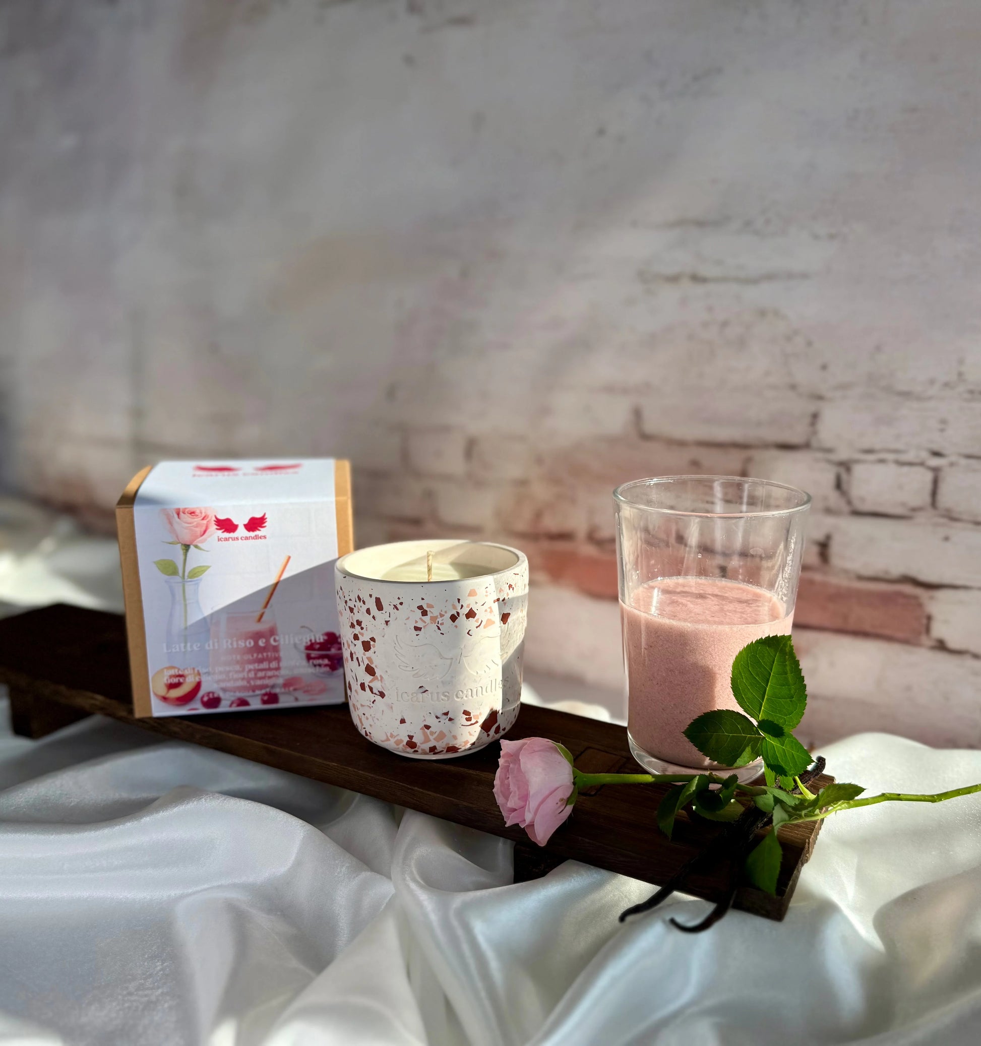 Accendi questa candela e lasciati avvolgere dalla dolcezza cremosa del latte di riso e dalla freschezza succosa della ciliegia. Un cuore delicatamente floreale e un fondo morbido creano un’atmosfera primaverile, luminosa e avvolgente.